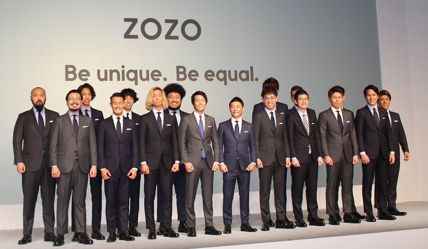7月3日から、男性用の上下の背広とそのインナーとなるドレスシャツの販売を開始し、8月上旬にはネクタイもラインナップに追加する。この背広は、ZOZOSUITで計測した体形データを基にパターンを作成し、生産する完全カスタムオーダー商品。販売当初は特別価格を設定し、背広上下とドレスシャツのセットを、2万4800円で販売する(定価は4万4800円)。生地の色は7色から選択し、柄、パンツのすそ始末やポケットの形など細部のデザインもオーダーできる。同社の前澤友作社長は「肩幅が狭い、身長が高い、腕が長い、体が大きいなどでサイズの合うスーツがなかった人でも、身体に合ったスーツを着られるようになる」と説明した。