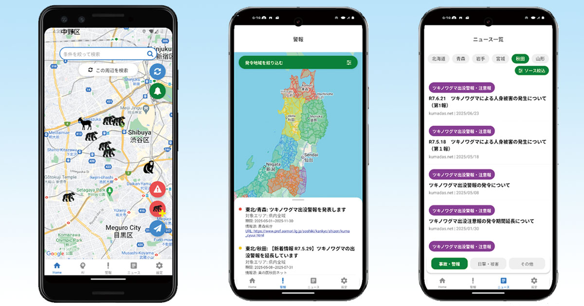 BearBell 全国規模で24時間情報収集する熊対策アプリ