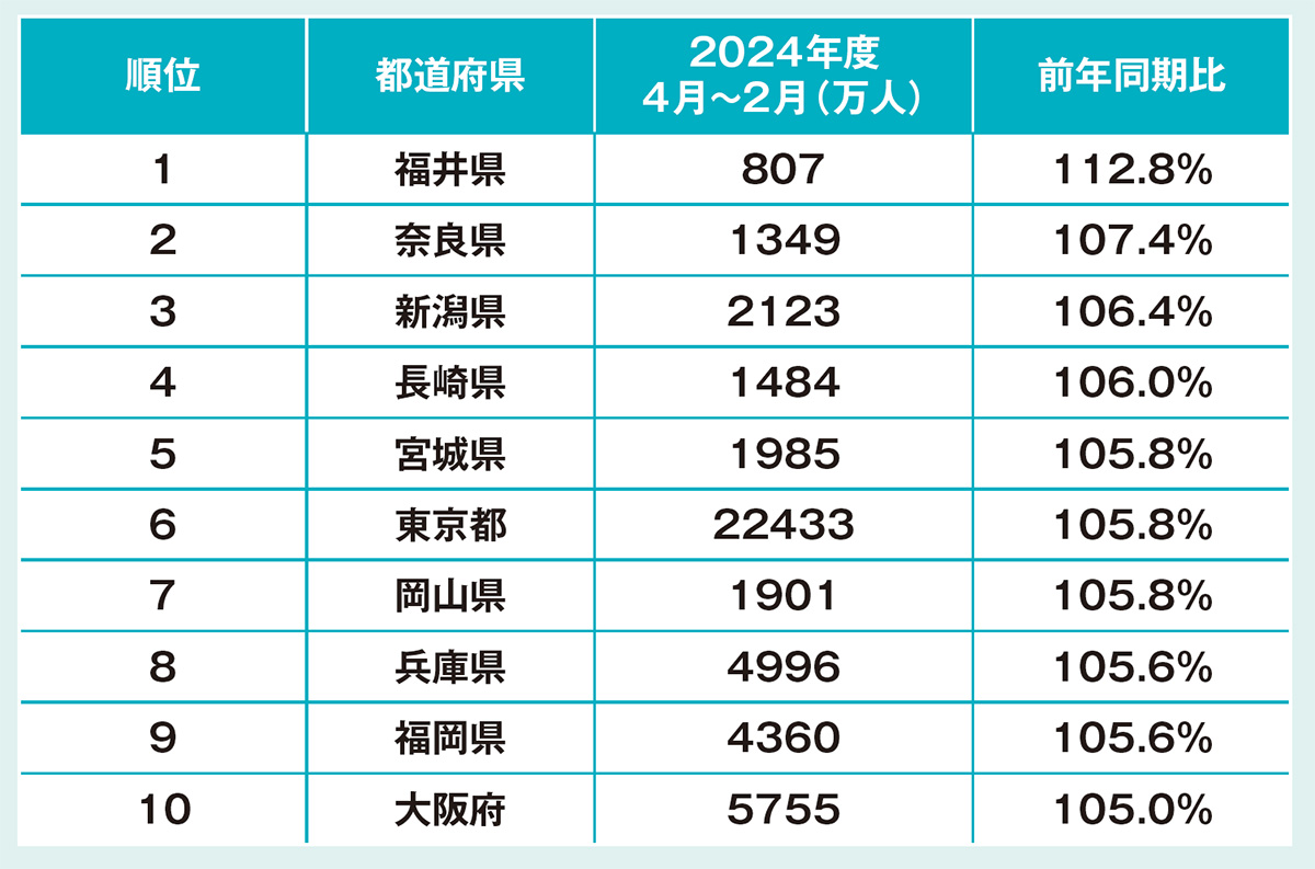 都道府県別観光来訪者増加率 トップ10(2024年度)