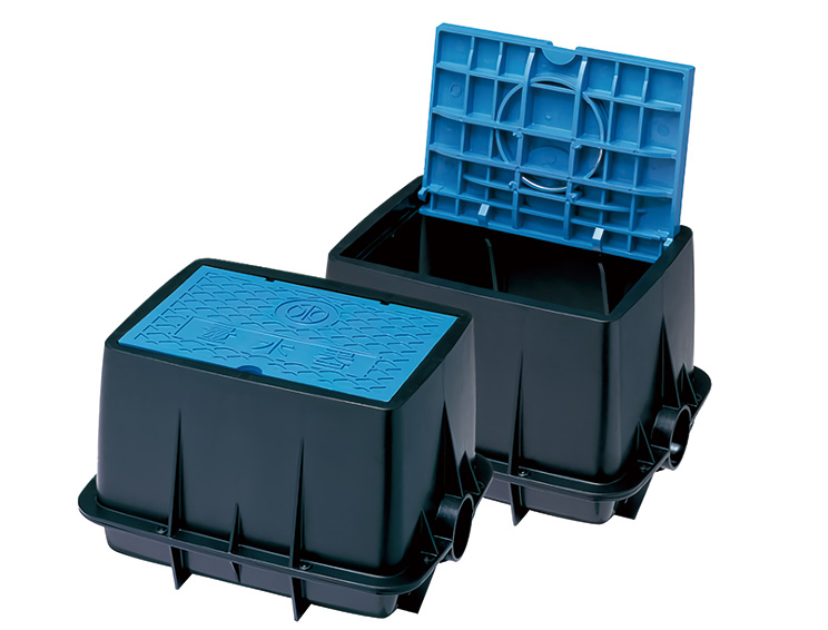 水道メーターを安全に収納するボックス(樹脂製)。シンプルな構造で施工が容易かつ、メンテナンスもスムーズなことが特徴