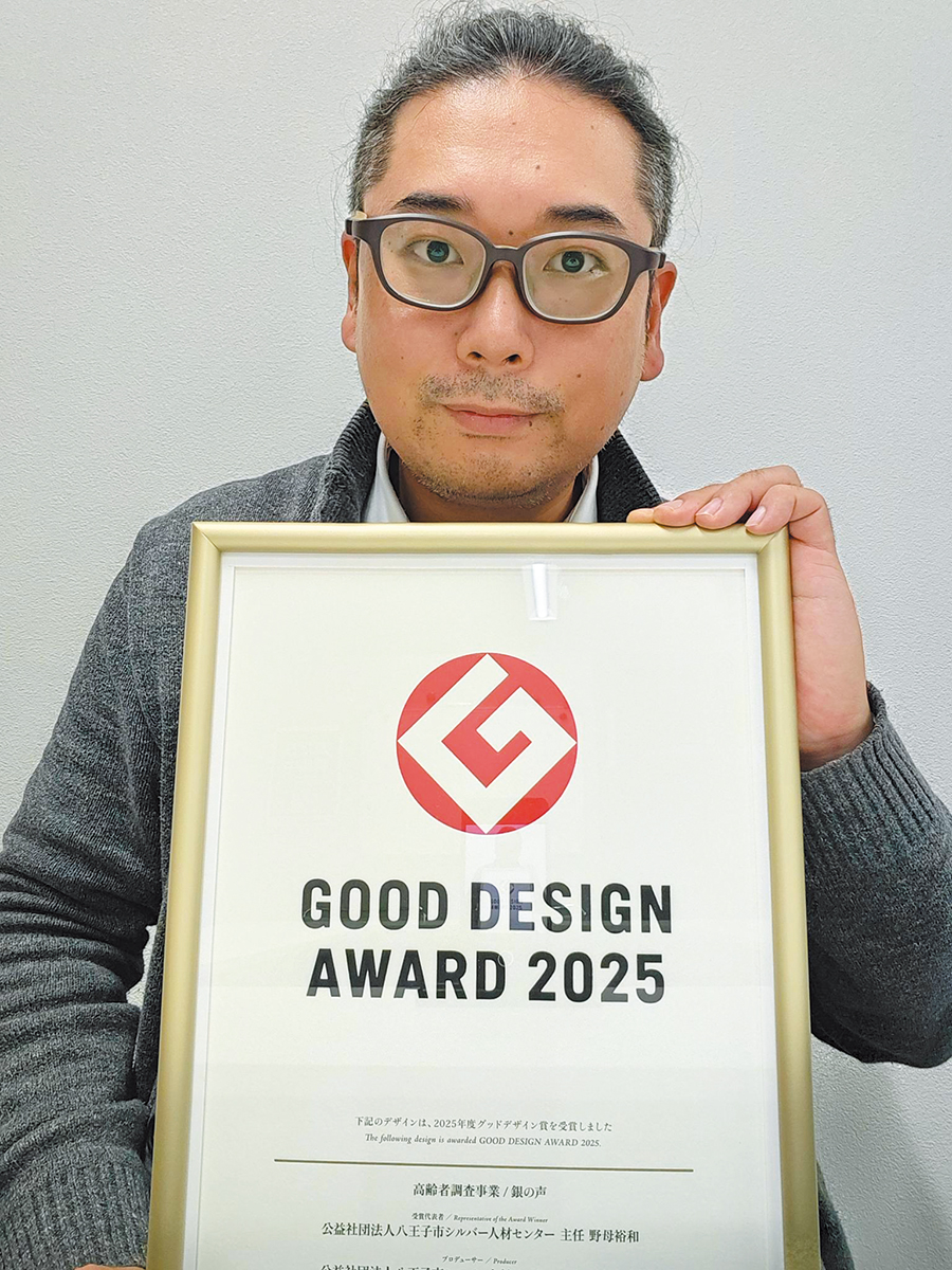 2025年1月から試験運用を開始し、現在までにオーディオメーカーや旅行代理店などで延べ100人以上の高齢者が仕事に関わった。野母氏は「事業のプロモーション活動と、内外での信頼性を高めること」を目的に、2025年度グッドデザイン賞に応募、シルバー人材センター史上初となる受賞を果たした。