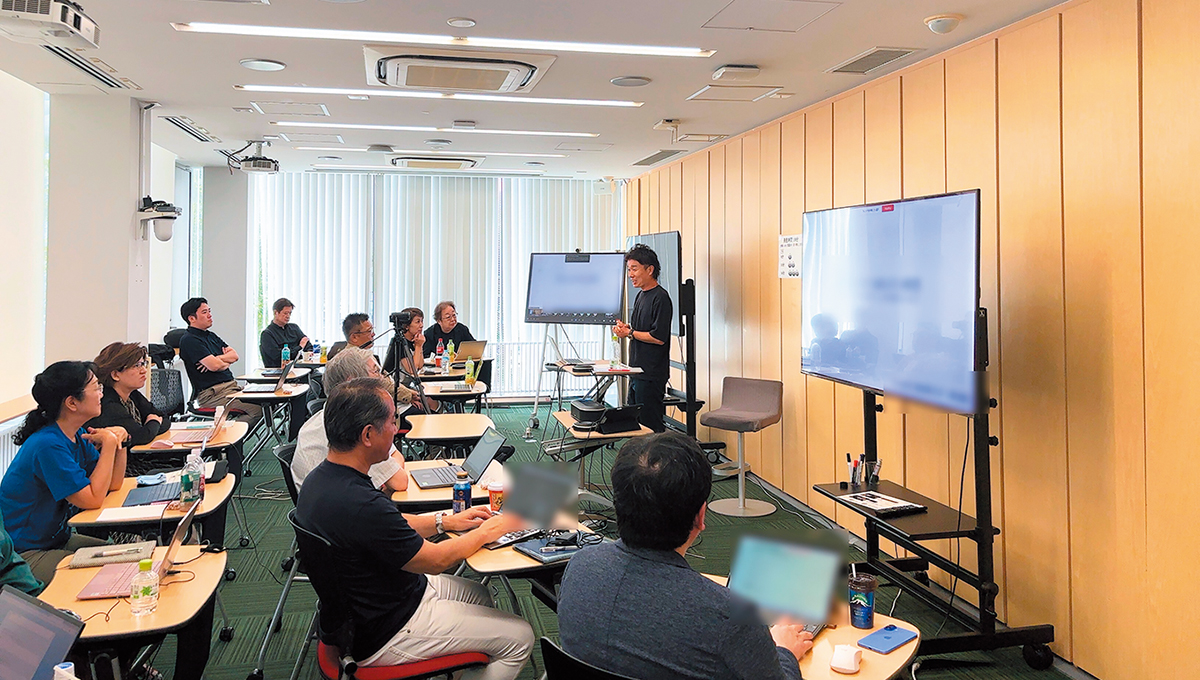 秋にかけて、全校舎で1年次・2年次の中間発表会を開催した。教育、ヘルスケア、地域振興、スポーツ、デジタルなど、研究テーマは多岐にわたる。発表では、現時点での研究成果や課題を示し、教授陣からのフィードバックに加え、修了生や院生同士の意見交換を通じて新たな気づきを得る。自身の構想と向き合い、次のステップへと進めるための重要な機会となっている。
