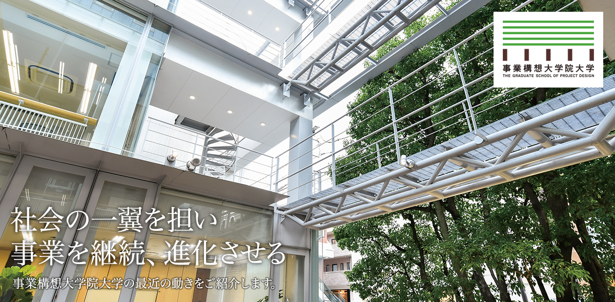 事業構想大学院大学は、社会や産業の構造変化を的確に捉え、新たな事業を構想し、実装へとつなげる力を育成する社会人を対象とした大学院である。修士課程では、2年間にわたる事業構想研究を通じて、事業構想修士(Master of Project Design:MPD)の学位を取得する。現場で培ってきた経験や課題意識を起点に、理論と実践を往還しながら、自らの構想を磨き上げる。