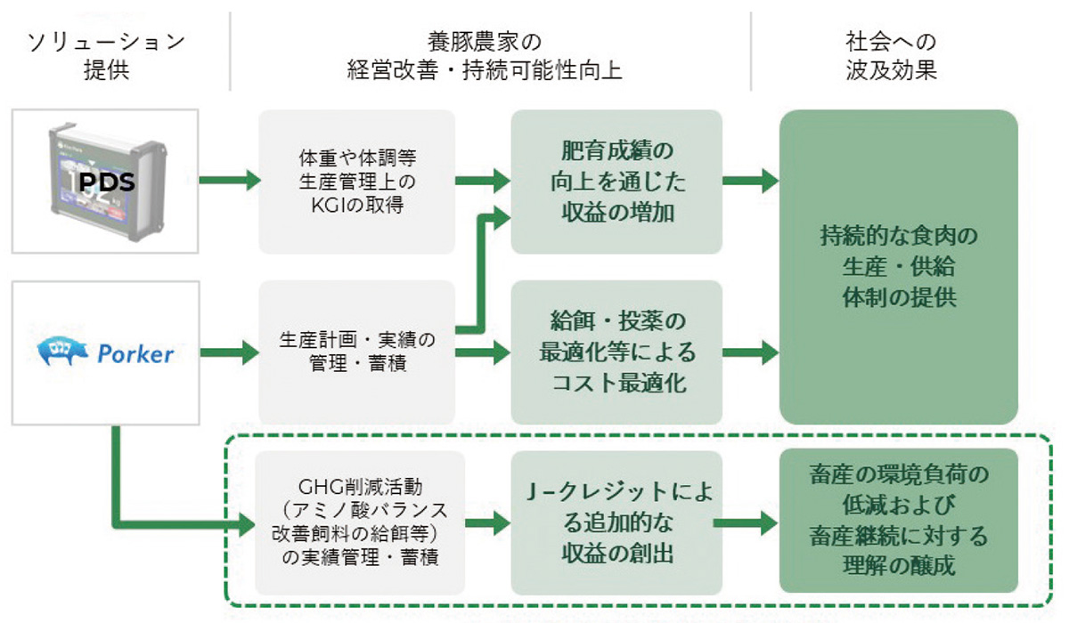 「『Porker』を使えば、GHG削減量を正確かつスムーズに算出でき、容易にJ-クレジット創出者になることができます。付加価値としての環境効果を可視化しながら、それを収益化することができるのです。足元の収益性と、長期的な生産性向上とコスト削減効果との両輪で訴求します」