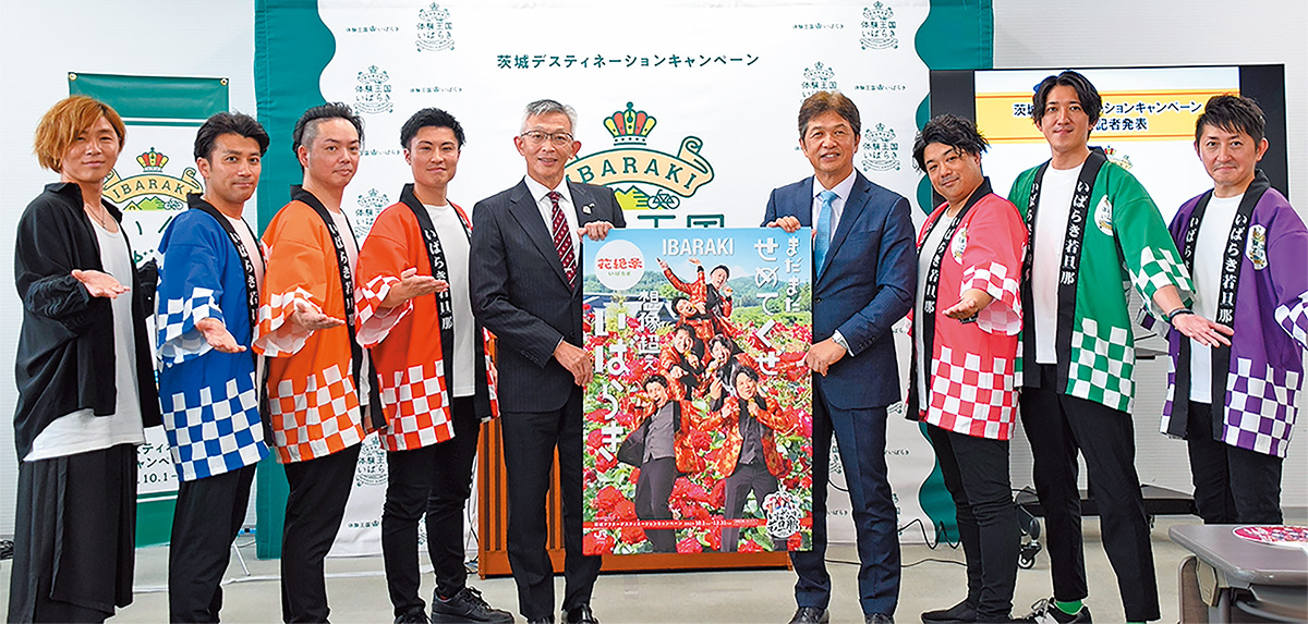 茨城デスティネーションキャンペーンでは、県内の宿泊施設で実際に働く若旦那たちが結成した昭和歌謡ユニット「いばらき若旦那」も活躍