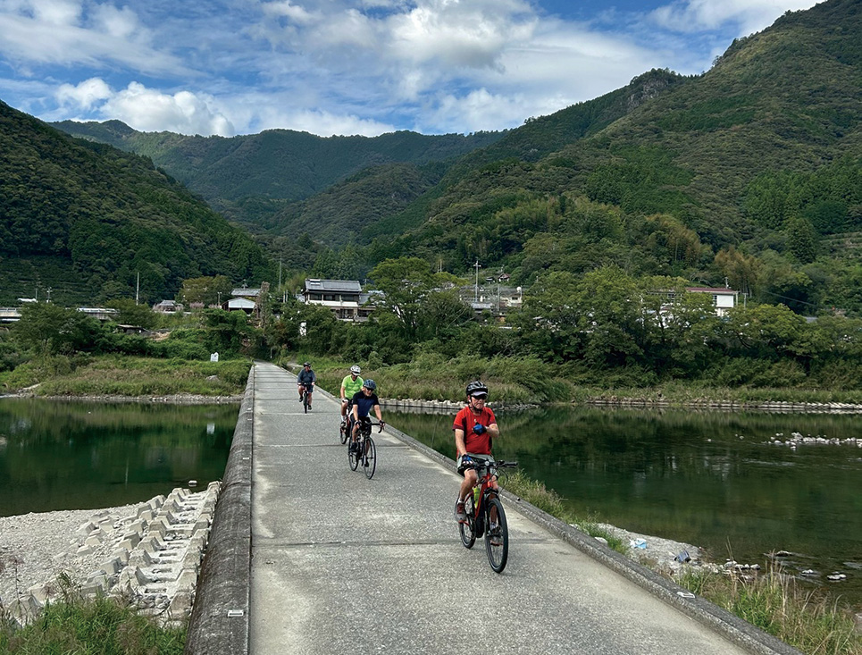 KochiAmigoが提供するツアーは外国語が堪能なガイドが随行する。自然や風景を目で楽しむだけでなく、地域の人々の暮らしや文化、伝統に触れ、日本の良さを体感してもらうためだ。例えば、しまなみ海道から愛媛県の松山を抜けて、四国カルストを経て高知市内を巡り、最後に徳島県へ抜ける1週間で四国一周ツアーでは、参加者はガイドと共に小回りの利く電動アシスト付き自転車「e-bike」で移動する。伴走するサポートカーには地域特産のフルーツやお菓子などを積み込んでおり、景色の美しい場所で休憩を取りながら、地元の味覚を楽しんでもらう。