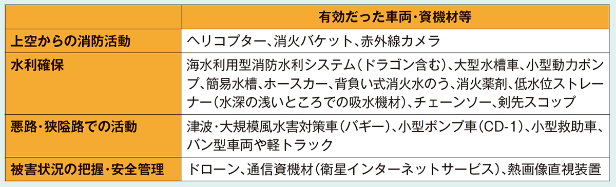 表 大船渡市林野火災で活用された資機材