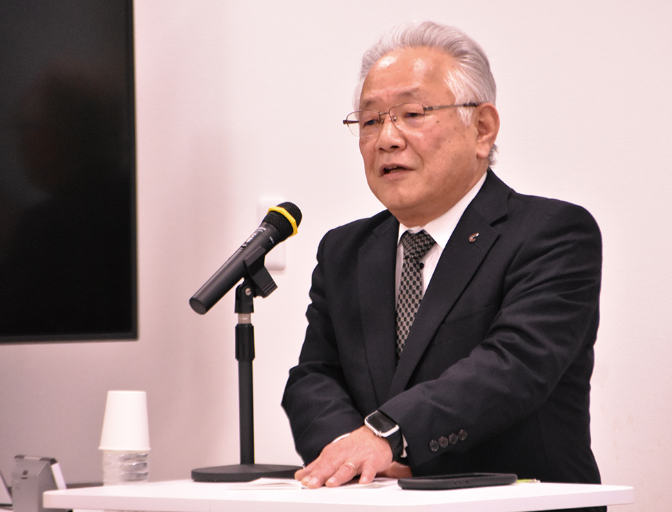 関西経済連合会常務理事・産業部長の久米一郎氏は、万博の成果を継承するため、空飛ぶクルマや再生医療など先端技術の社会実装をオール関西で支援する体制に向けて検討を進めていることを報告した。公設試験場の広域連携(関西広域産業共創プラットフォーム)では、大阪・泉南の特産品「水なす」の保存期間延長を鳥取県の技術で実現した事例も紹介。JR大阪駅前のグラングリーン大阪のJAM BASEを拠点にしたスタートアップ支援や、DX推進に向けた「KANSAI DX AWARD」など、関西の産業競争力強化に多面的に取り組んでいると述べた。