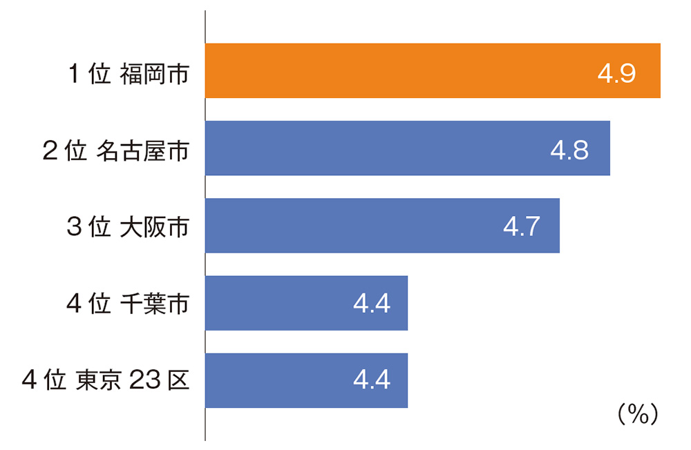 福岡市の開業率は4.9%で、21大都市中7年連続で日本一となっている。