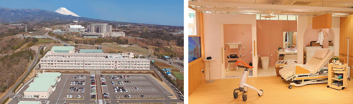 左/富士山を背景に立地するファルマバレープロジェクトの拠点施設「ファルマバレーセンター」