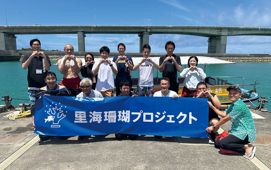 サンクスラボでは2022年から「里海珊瑚プロジェクト」を立ち上げ、地元の沖縄の海で深刻化する珊瑚礁を保全するための活動を推進している。