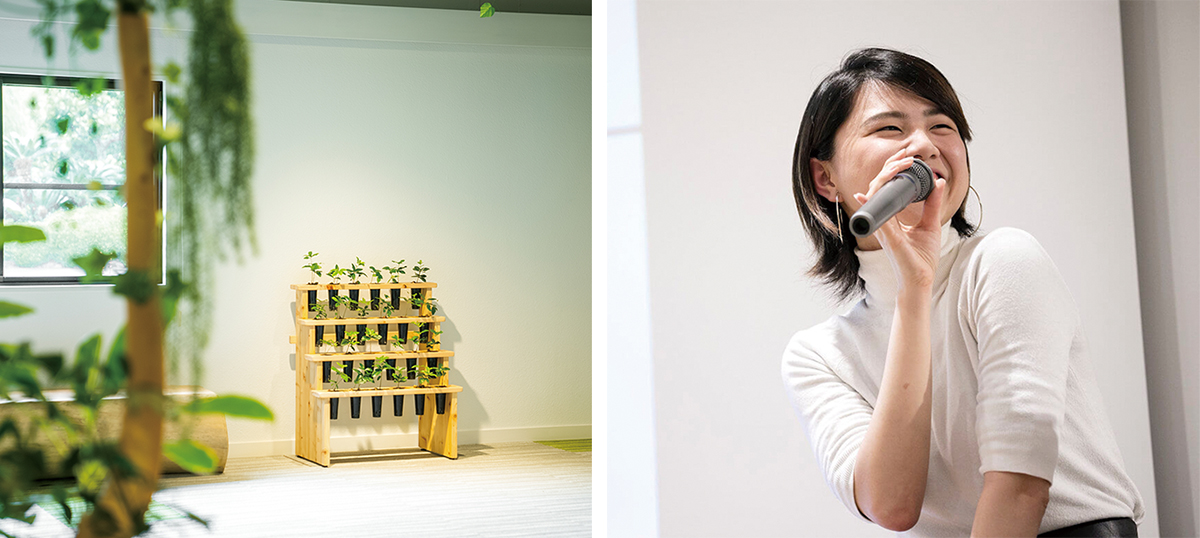 MODRINAE for BUSINESSでは、企業のオフィスで苗を育てる(左)。