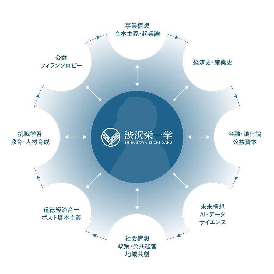また、AIに関しては「渋沢栄一AI開発プロジェクト」という名称で開発が進む。これはAIを使って渋沢を現代に蘇らせようという話ではない。渋沢栄一学の構想に共感する様々な専門分野を持つ研究者と研究室アライアンスを組み(図2)、渋沢の研究を推進するのと同時に、渋沢に関するありとあらゆる情報を学習させたAIモデルを開発し、学習に役立てることが目的だ。人間はAIと対話することで新たな問いや考えるヒントを得られ、探究を深めていくことができる。同時にAIも新しい対話に学ぶため、渋沢が知り得なかった令和の情報も得て、どんどん進化を続けるという。