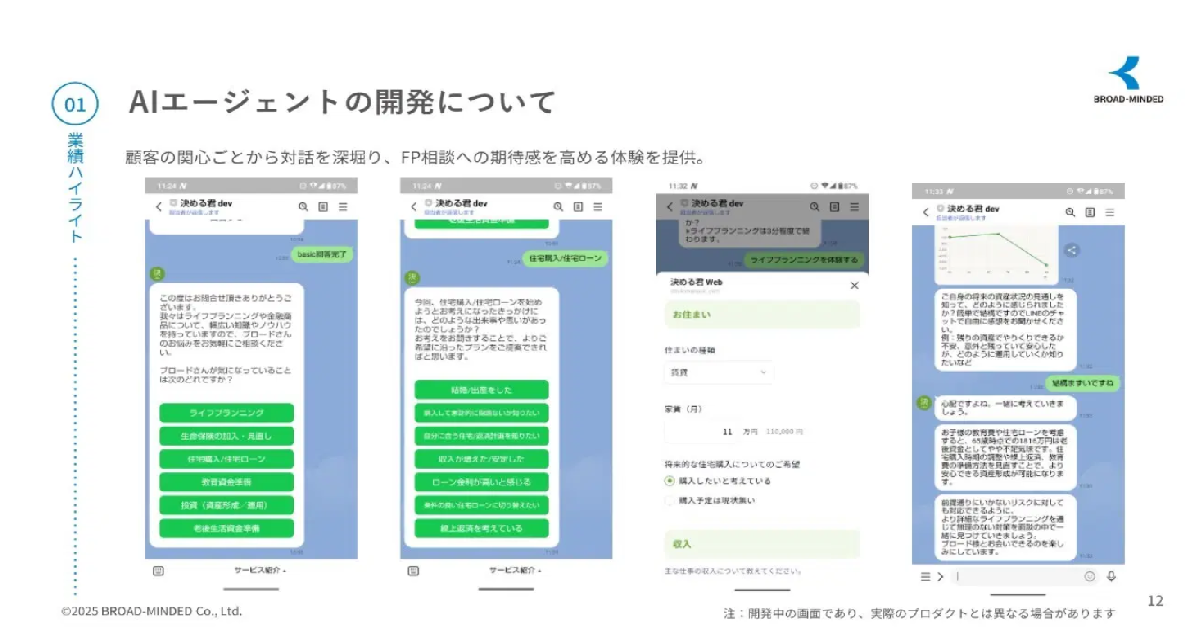 コンサルティングの多くの工程はテクノロジーで最適化可能です。秋の導入に向けブラッシュアップ中のAIボットは、LINEを通じ24時間365日お客様の悩みに応えます。対面相談への心理的ハードルや「売られる不安」を持つ層にとって、客観的なデータを示すAIは非常に親和性が高い入り口となります。AIが現状分析を行い、高度な情緒的判断が必要な部分を人間が担当する「ハイブリッド型」を目指しています。