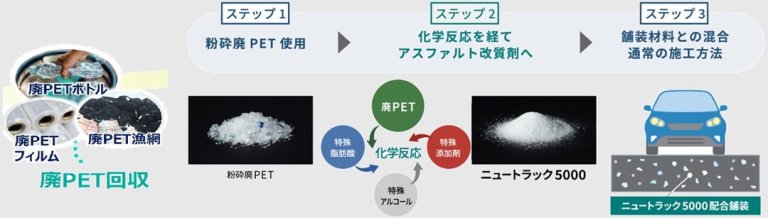 廃PET素材のアップサイクルで、アスファルト舗装の高耐久化にも貢献